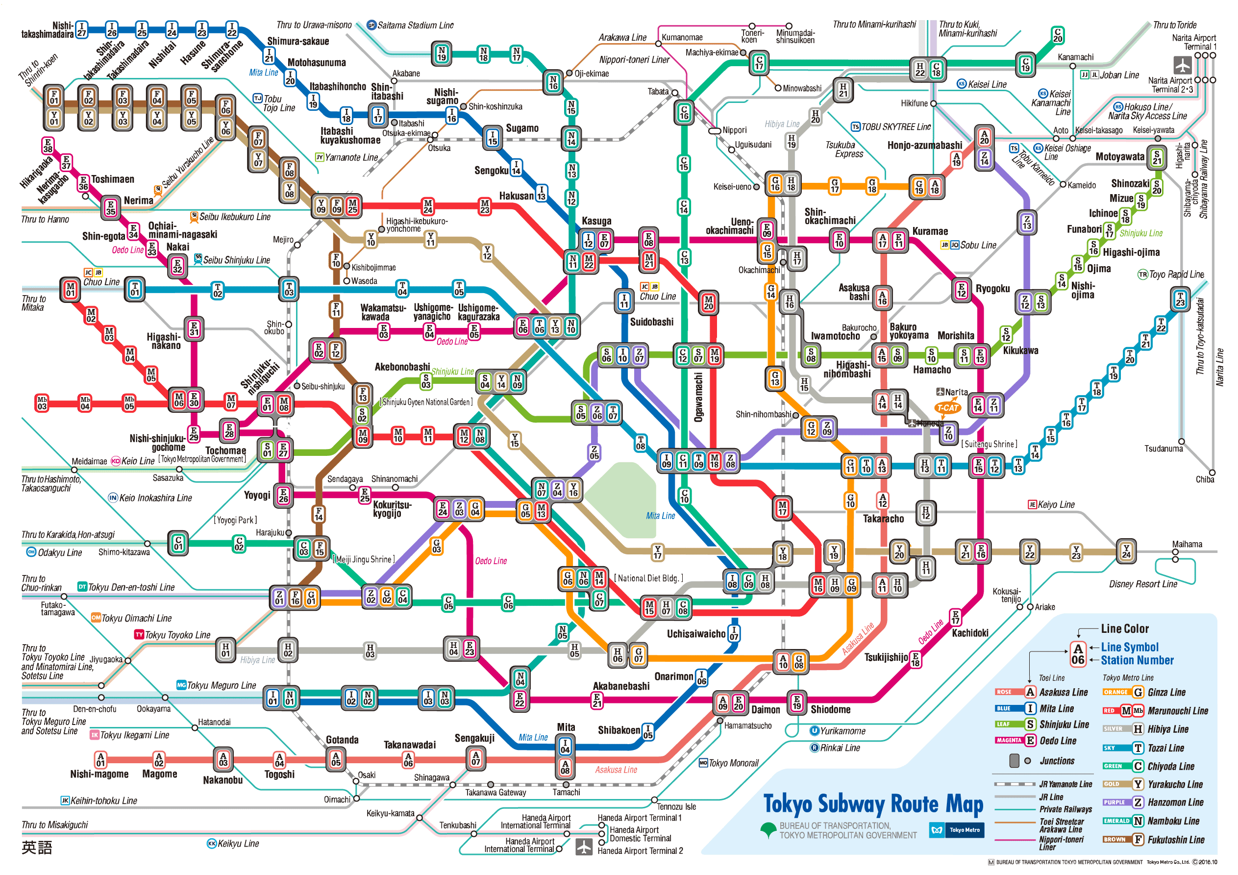 The Tokyo subway map is, shall we say, overwhelming, but that’s not what can make traveling around Tokyo so confusing. Subway stations in Japan are vast complexes, filled with shops and restaurants, with many different routes to reach the same place. The newest line, the Ueno Line, is so deep it can take over ten minutes to reach your platform. Platforms are so long that you can end up on the opposite end of the neighborhood if you take the wrong staircase up to the street.